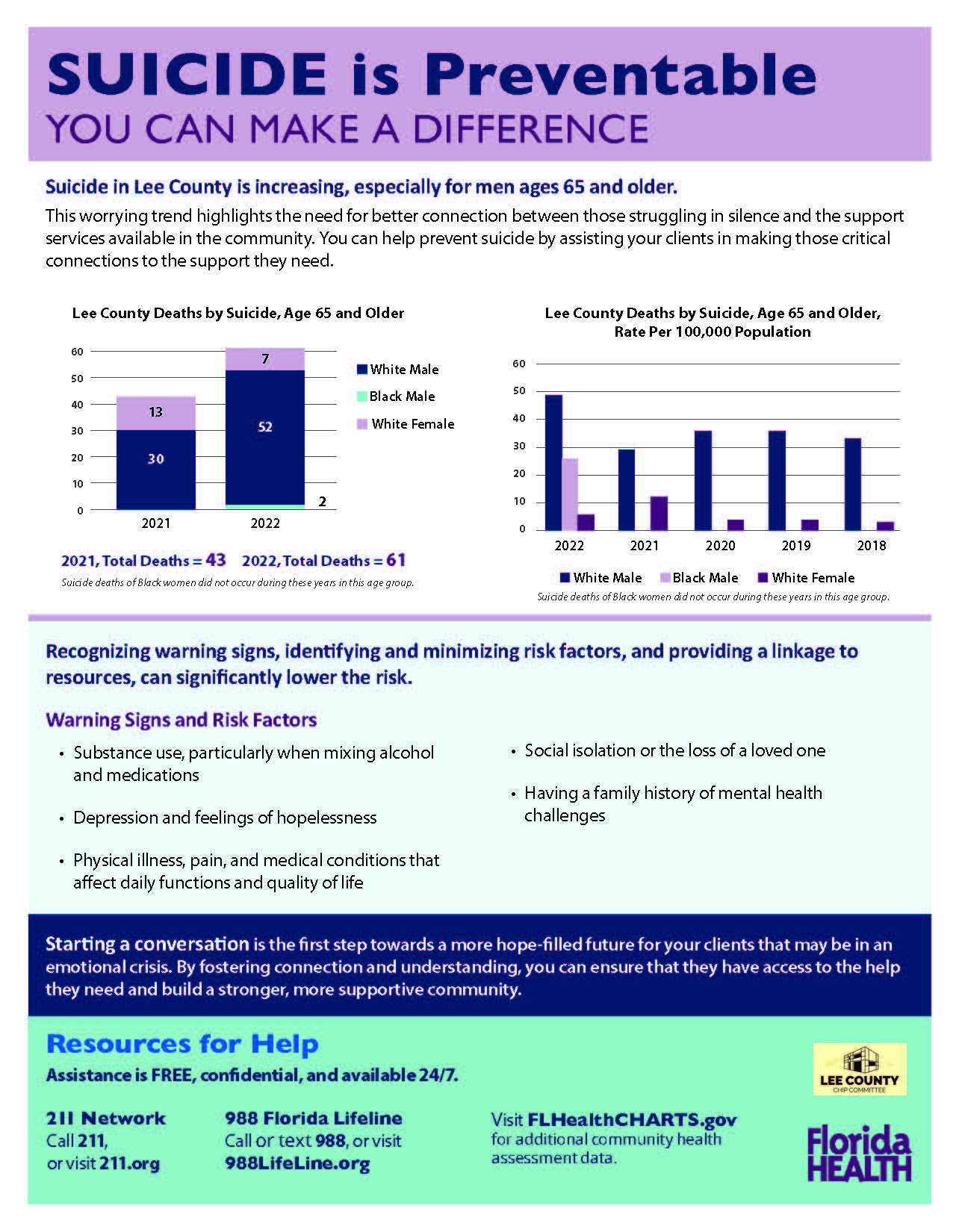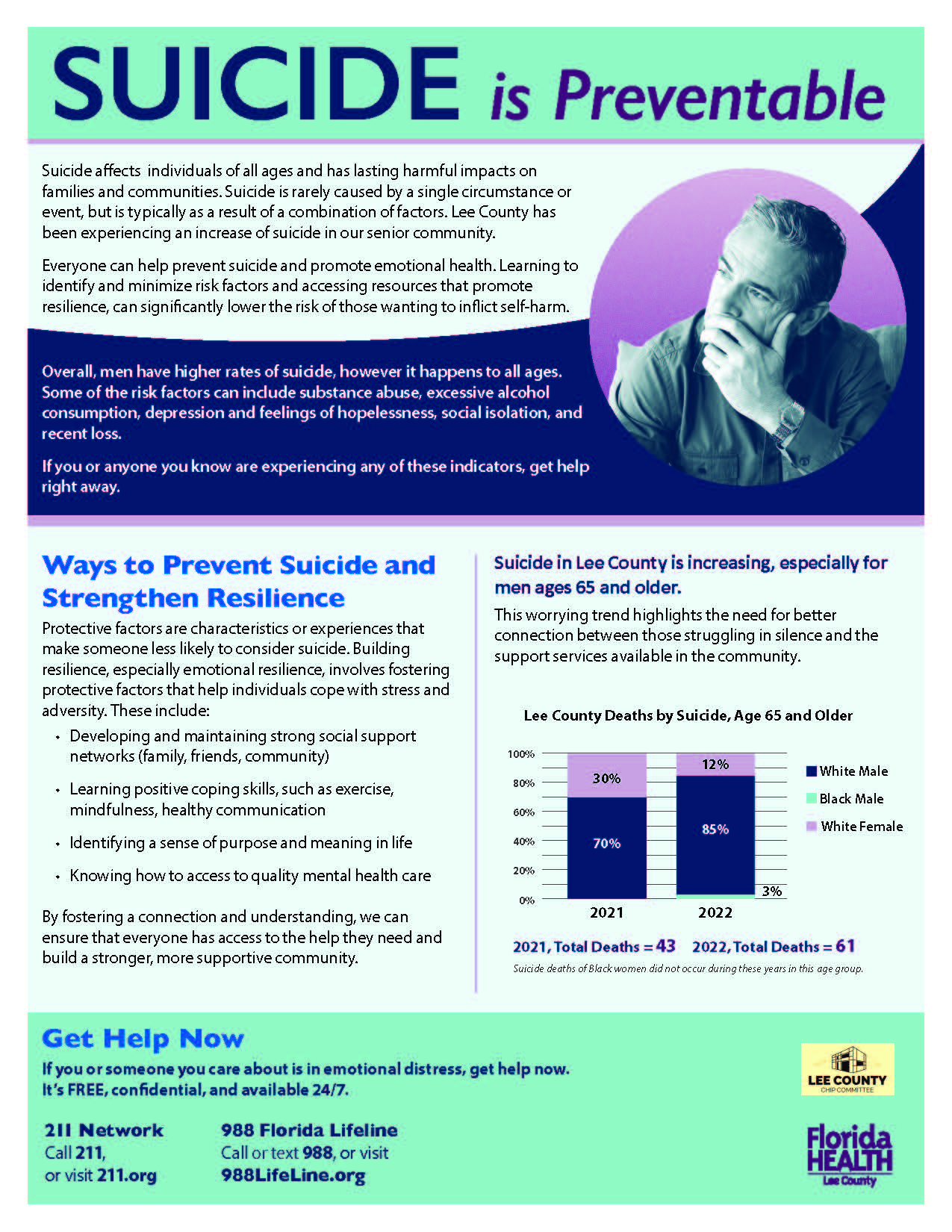 Suicide is classified as a serious, but preventable, public health problem in the United States, according to the U.S Centers for Disease Control and Prevention, or CDC. The harmful impact of suicide or attempted suicide extends not only to the victim, but also to families and the community at large, like the residents of Lee County.